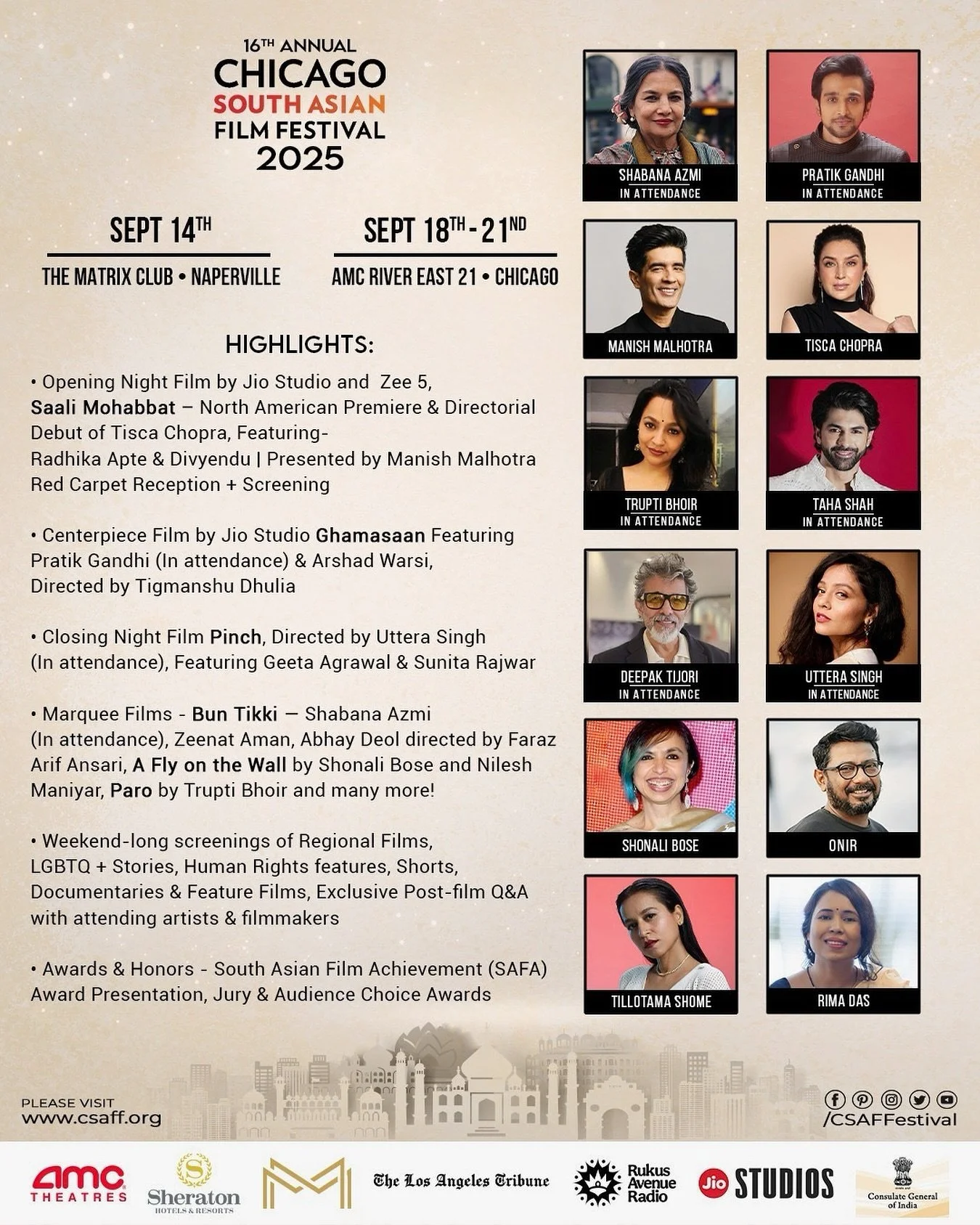 The Chicago South Asian Film Festival proudly celebrates 16 years of showcasing the artistry and creativity of South Asian filmmakers. Since its inception, the festival has been a platform for talented individuals to share their unique stories and perspectives with the Chicago audience. Through a diverse selection of films, CSAFF continues to highlight the richness of South Asian cinema and its impact on the global film industry. Join us in commemorating another year of cultural exchange and artistic excellence at the Chicago South Asian Film Festival.